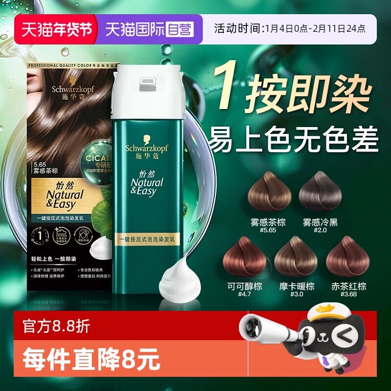 【自营】施华蔻泡泡染发剂怡然一按染植物纯染发膏官方旗舰店正品