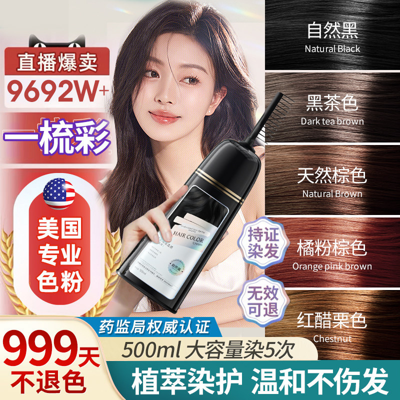 染发膏纯植物无刺激黑茶色男女专用泡泡自己染发剂正品官方旗舰店