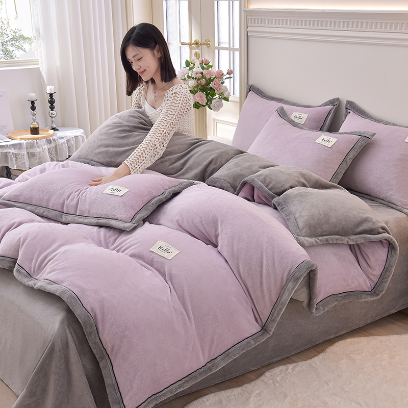 多喜爱家纺暖暖绒三/四件套简约套件冬季珊瑚绒法兰绒撸猫感保暖