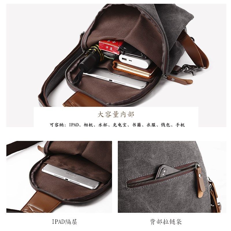 复古帆布胸包男士新款大容量斜挎包时尚腰包通勤背包多功能单肩包