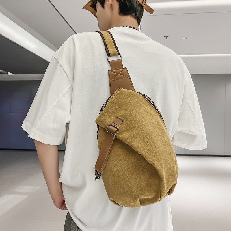 复古帆布胸包男士2023年新款潮牌斜挎包韩版时尚运动休闲单肩背包