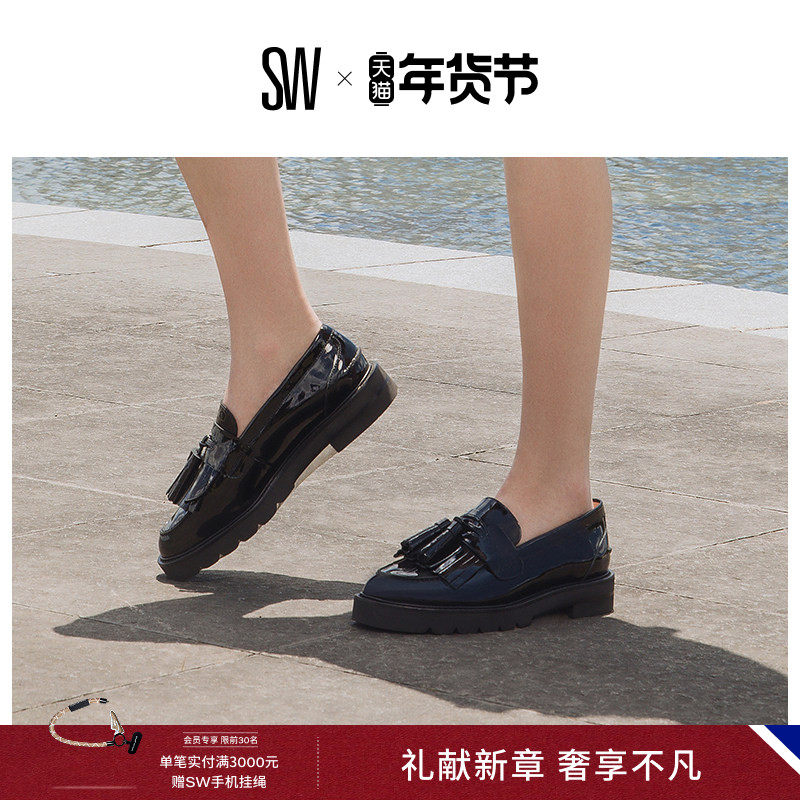 SW MILA LIFT 春季一脚蹬厚底乐福鞋流苏单鞋女制服鞋小皮鞋