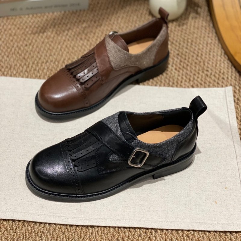 复古英伦风布洛克流苏单鞋女2026春新款深口通勤鞋皮带扣小皮鞋女