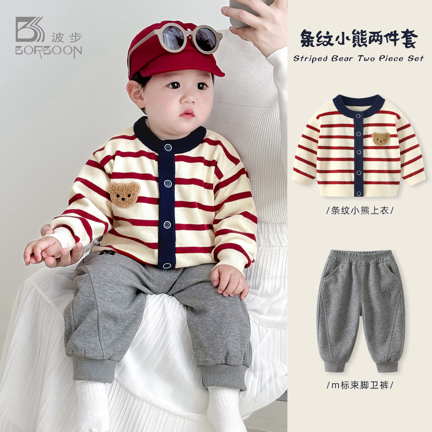 男宝宝春装分体套装1岁婴儿毛衣春秋衣服男童外套儿童针织开衫春