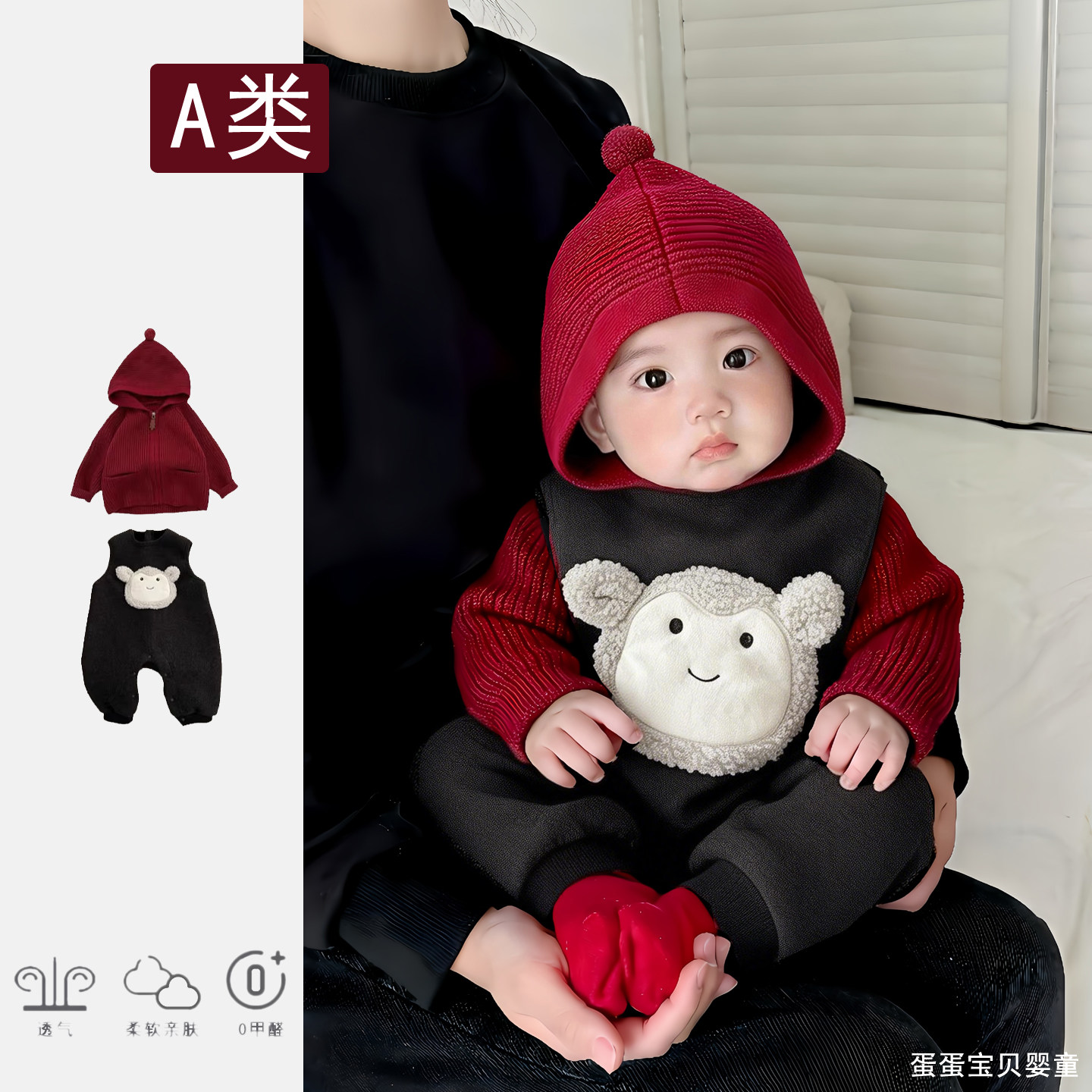 婴儿衣服男宝宝冬装背带裤毛衣套装超萌洋气幼儿外出拜年过年冬季