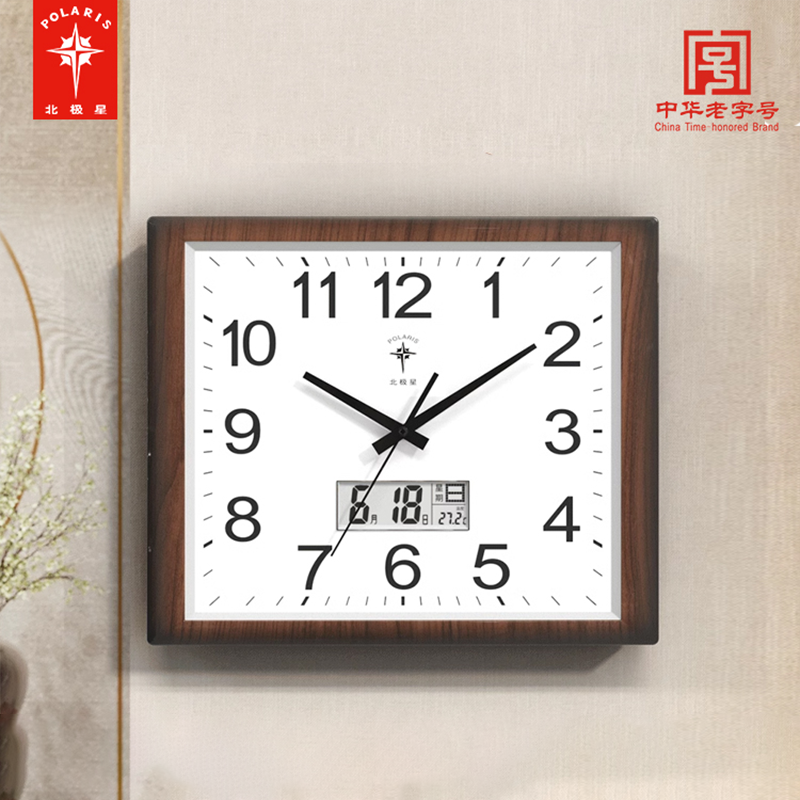 北极星客厅静音大挂钟方形日历石英钟创意钟表现代简约时尚家用钟