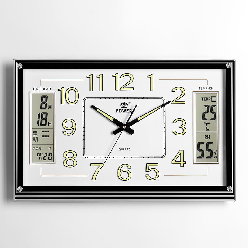 POWER霸王客厅大挂钟万年历挂表夜光立体字家用钟表免打孔日历钟