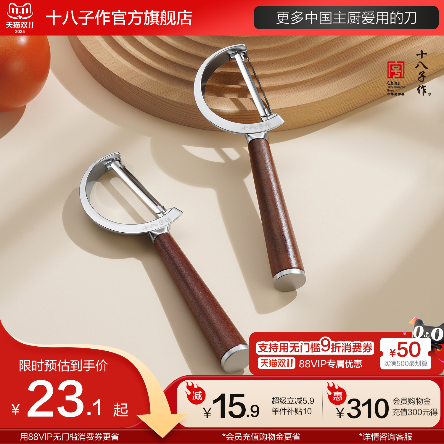 十八子作水果削皮刀厨房专用土豆刮皮刀不锈钢瓜刨子家用去皮神器