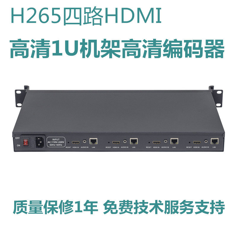 四路HDMI环出高清1U机架式编码器H265视频采集盒教育录播系统集成