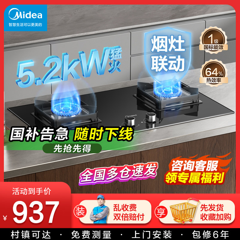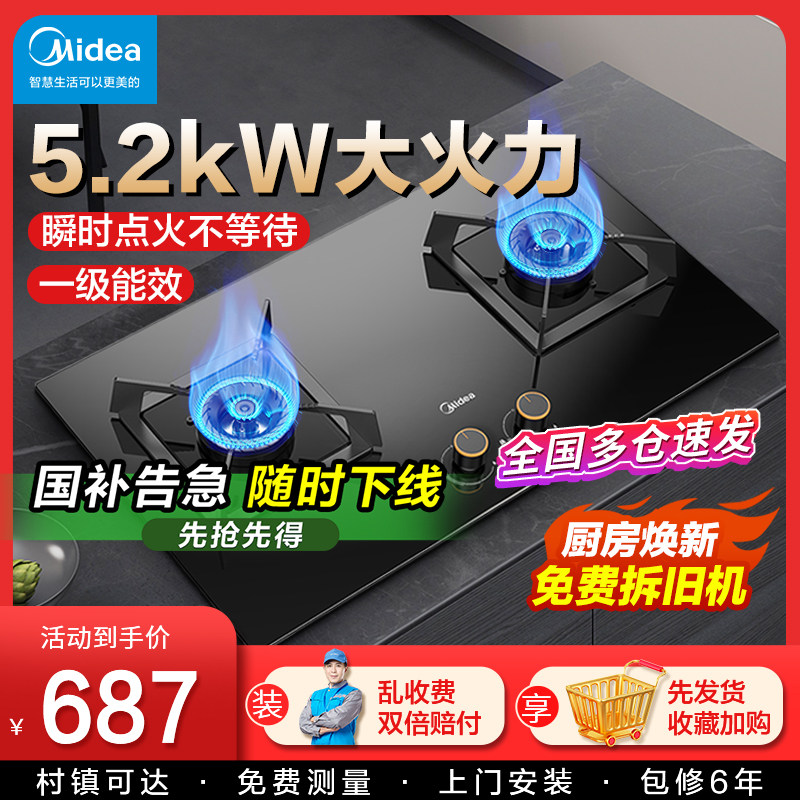 以旧换新补贴美的燃气灶双灶煤气炉家用猛火天然气灶具台式嵌入式