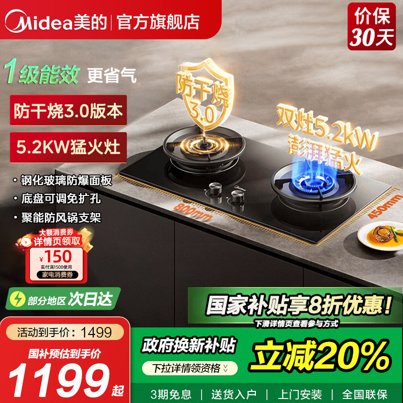 政府补贴美的燃气灶防干烧家用煤气灶天然气灶台液化气灶具炉官方