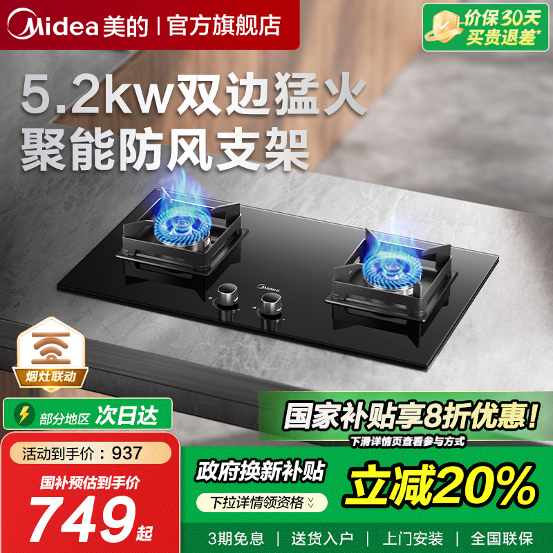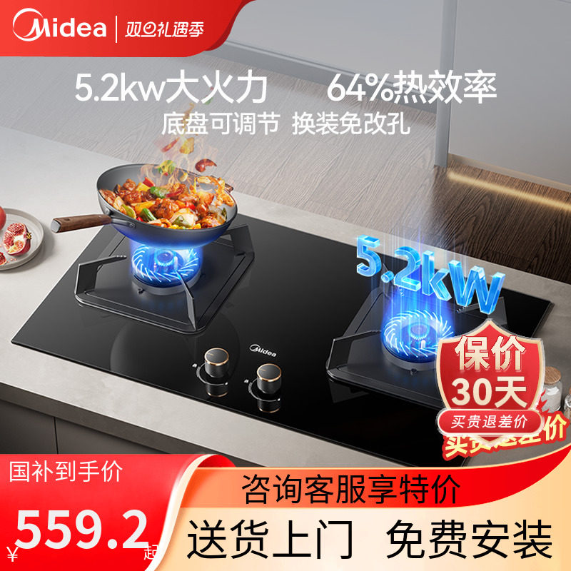 【国家补贴】美的燃气灶双灶家用5.2KW大猛火天然气液化煤气炉