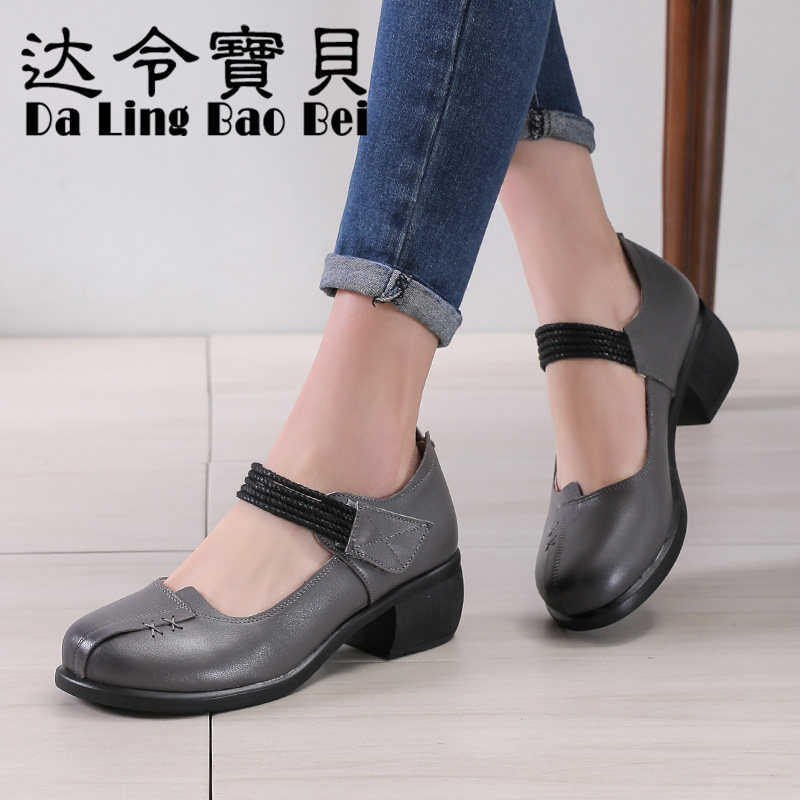 头层牛皮春秋款小皮鞋中跟单鞋软底妈妈鞋真皮复古牛筋底百搭女鞋