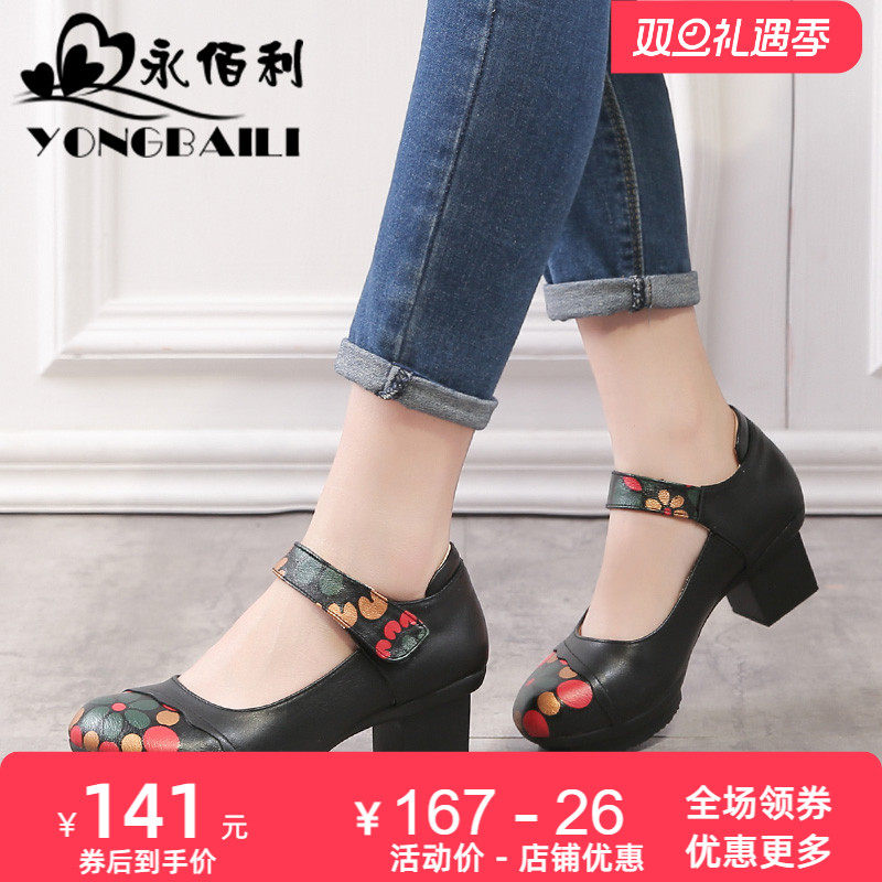 复古单鞋粗跟百搭真皮民族风妈妈牛皮鞋舒适软底中跟奶奶鞋春秋款