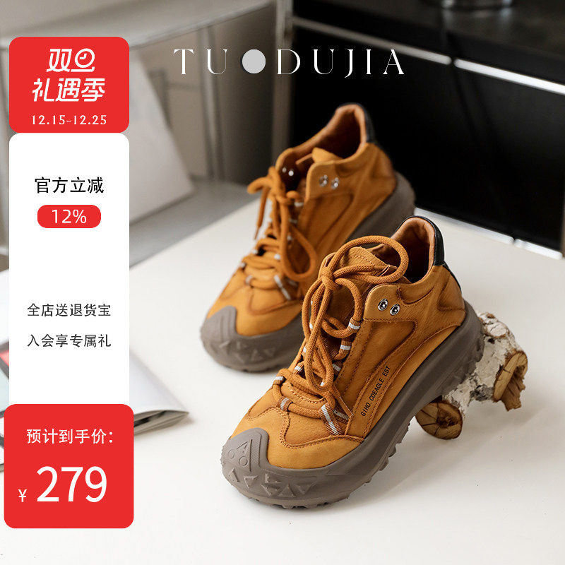 脱毒家 真皮登山鞋休闲运动鞋防撞头舒适牛皮鞋中跟厚底单鞋女新