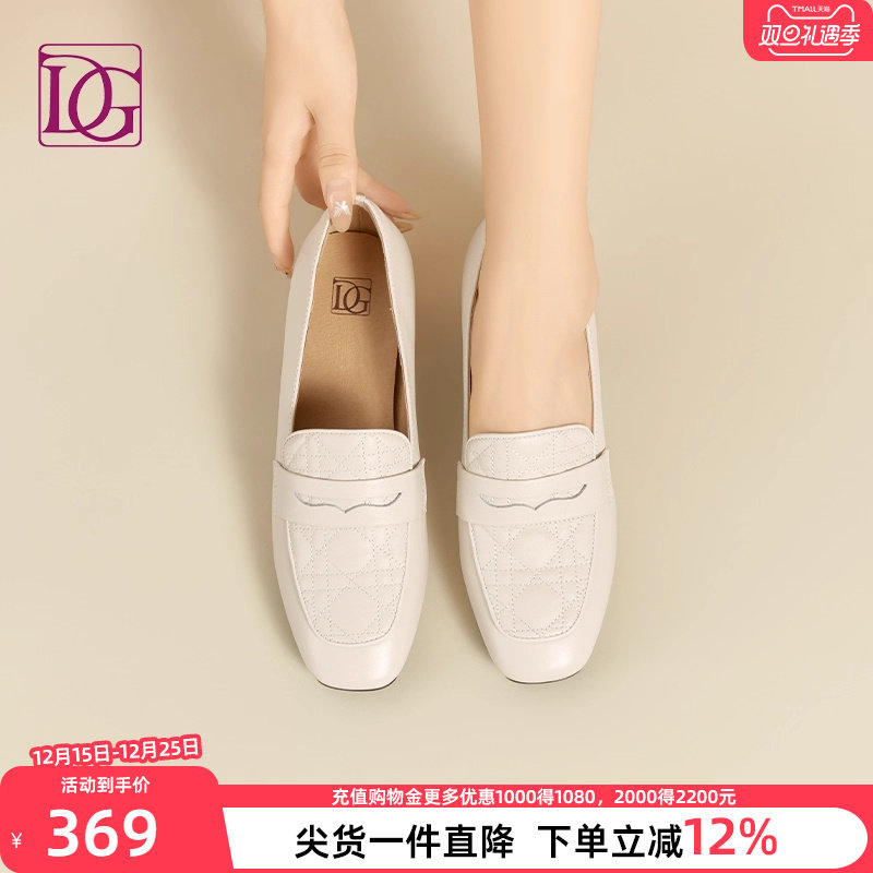 千百度秋季新款牛皮真皮鞋子粗跟单鞋中跟通勤百搭乐福鞋女鞋方头