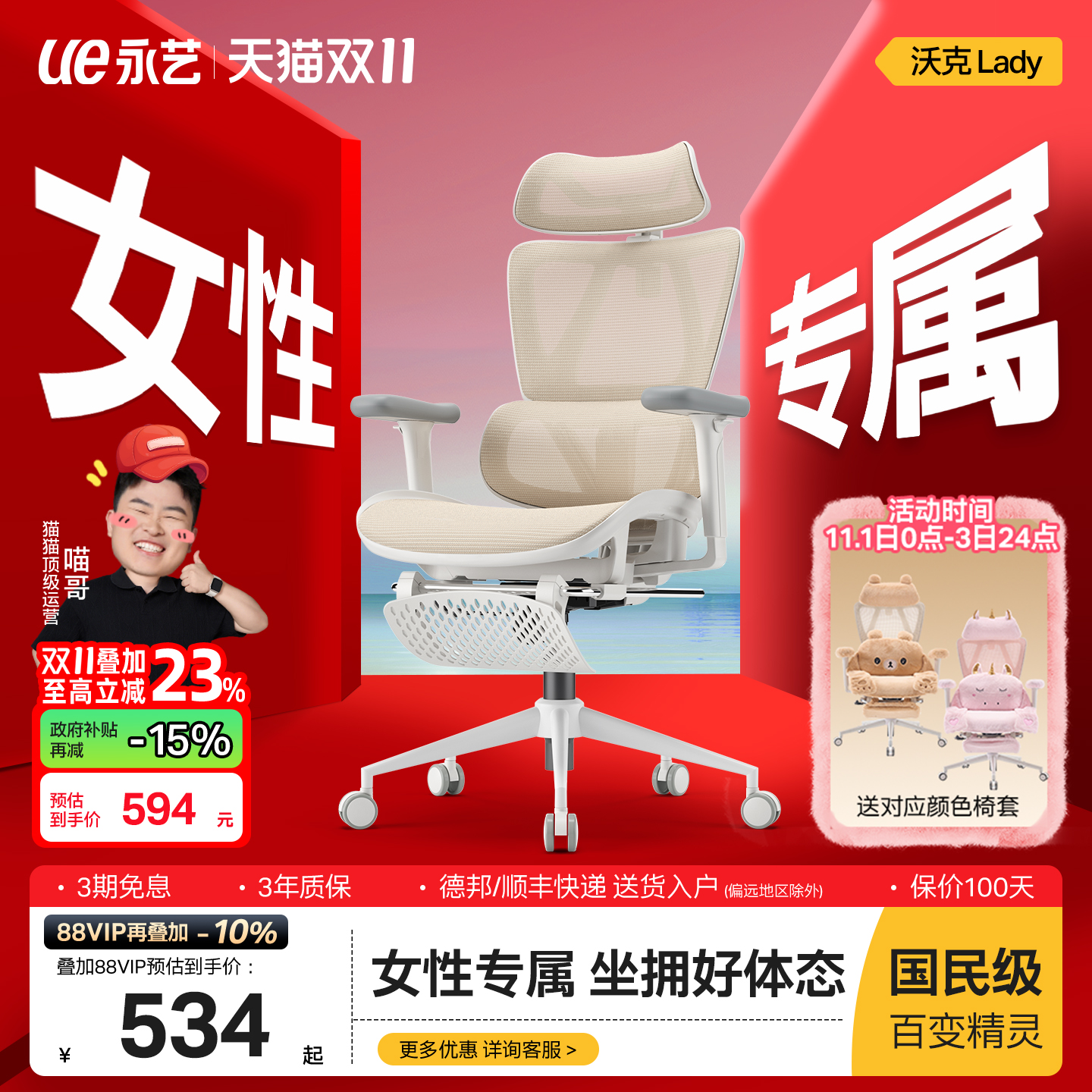 ue永艺沃克Lady女生椅人体工学椅宿舍椅子家用办公椅电竞椅电脑椅