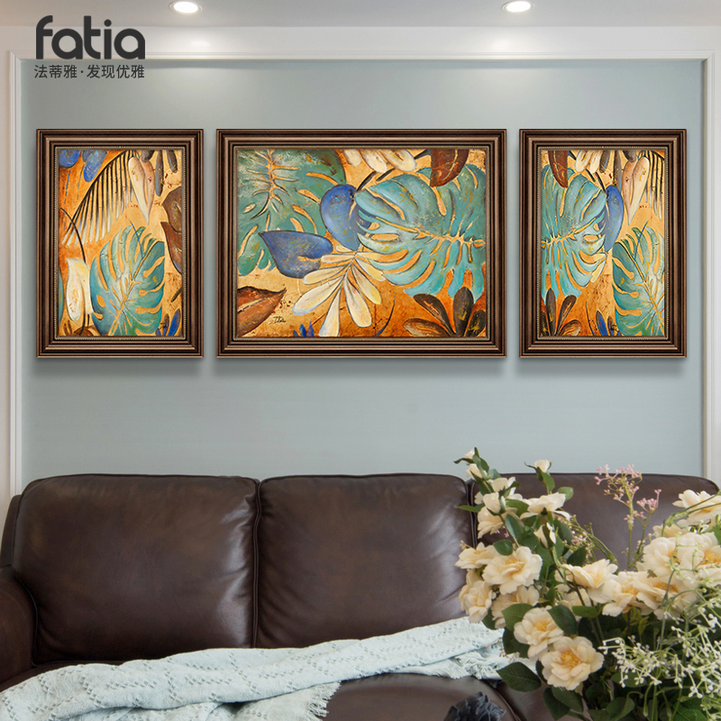 沙发背景墙装饰画欧式三联画美式复古挂画新正品油画肌客厅墙壁画