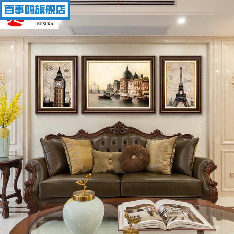 极速美式客厅装饰画沙发背景墙z欧式三联画建筑挂画大芬油画村玄