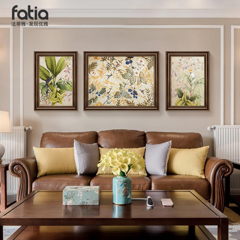 美式装饰画客厅沙发背景墙挂画2025新款高级感欧式三联画花鸟壁画