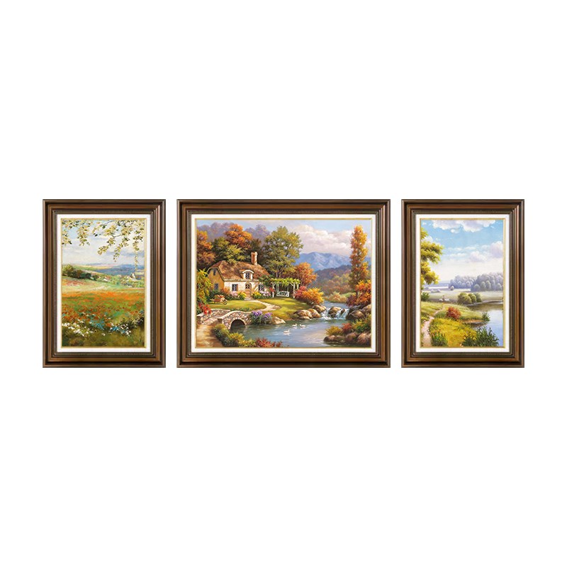 美式客厅装饰画三联画欧式风景画沙发背景墙挂画复古油画法式壁画