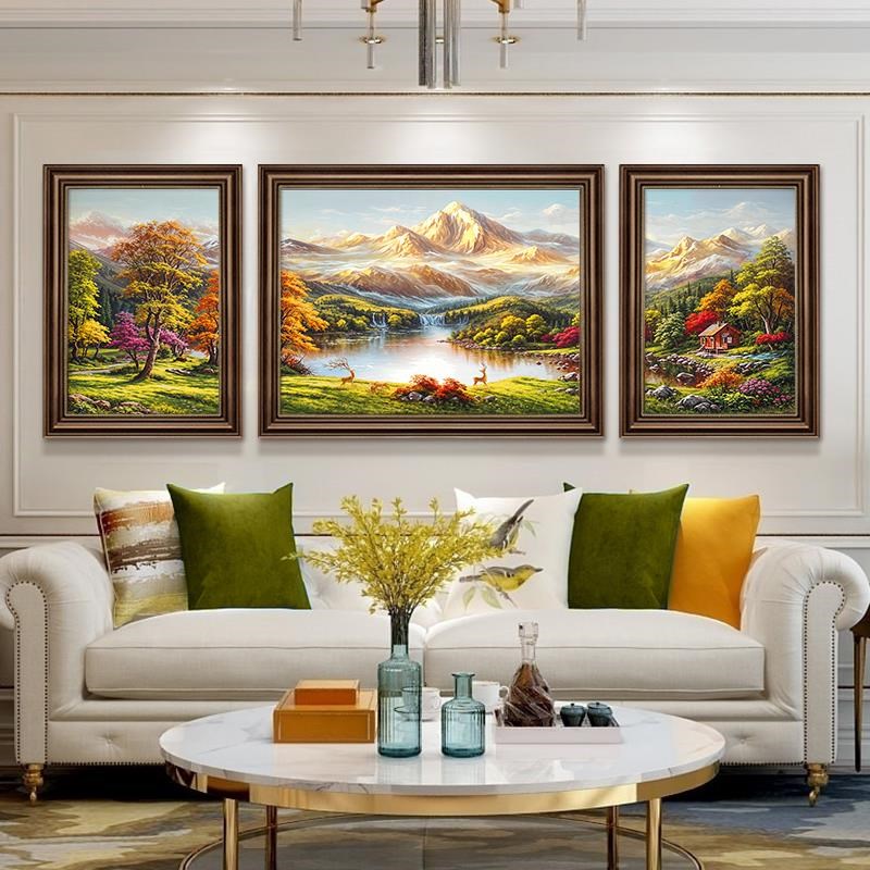 美式客厅沙发背景墙装饰画欧式三联画风景挂画墙面壁画高级感油画