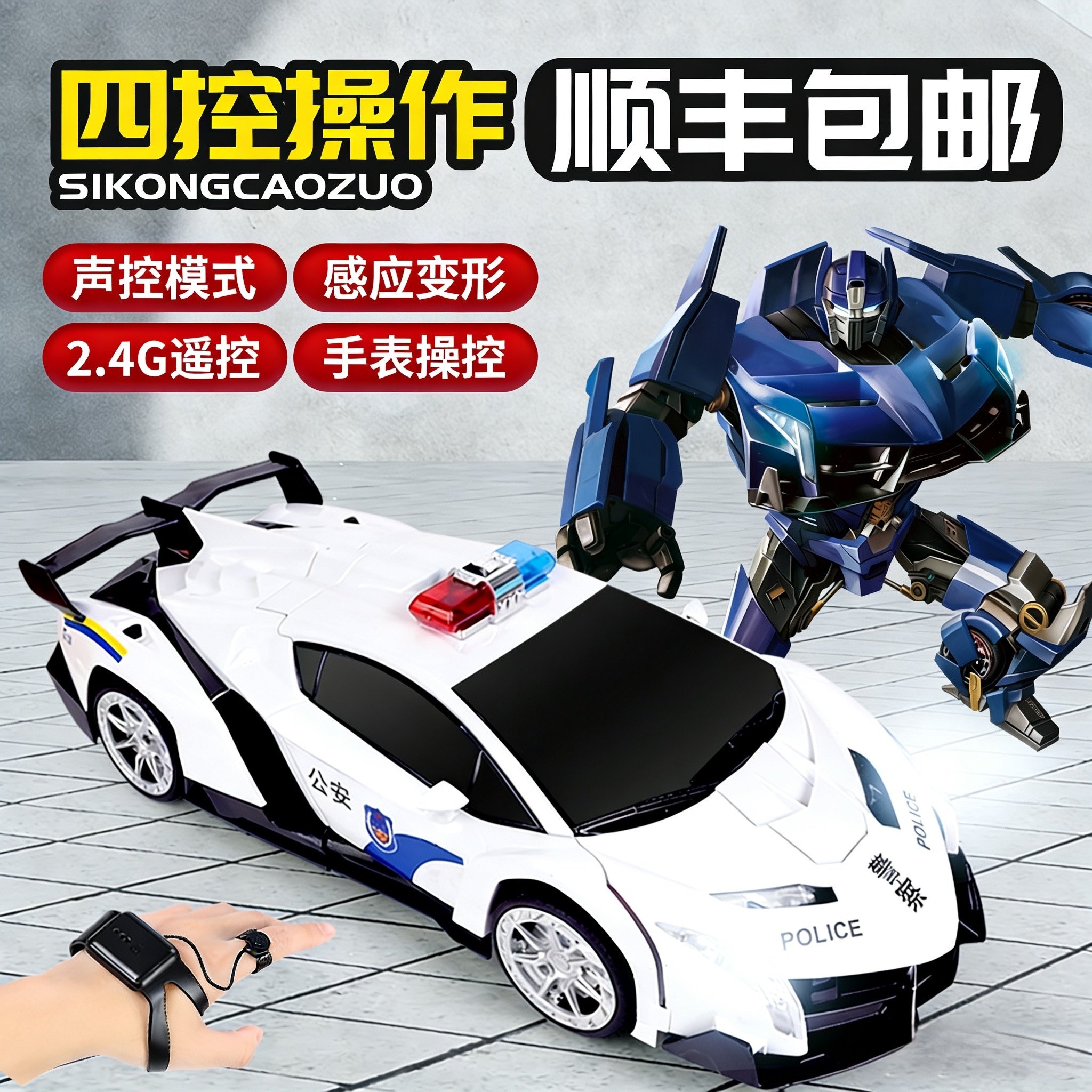 变形遥控车玩具金刚机器人一键变形警车儿童漂移变形汽车礼物男孩