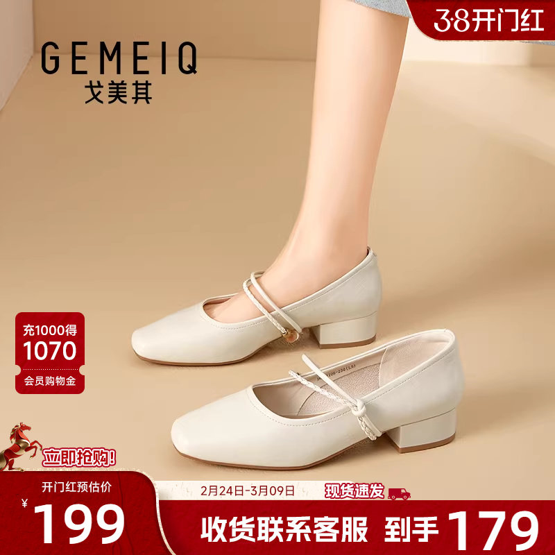 戈美其法式气质玛丽珍鞋女2026年春季新款复古粗跟浅口单鞋小皮鞋