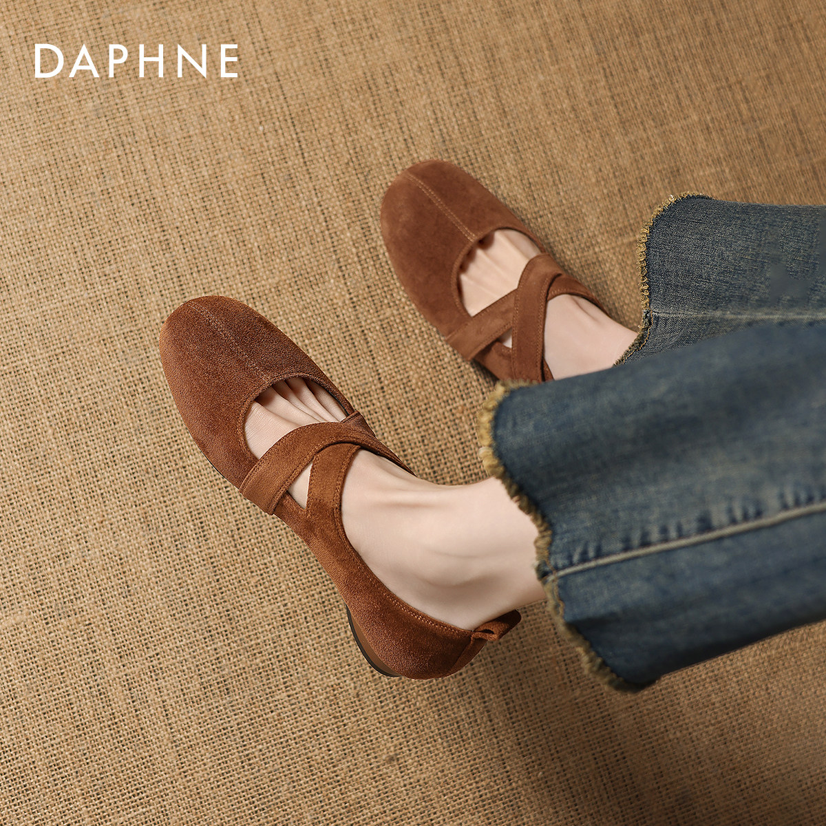 达芙妮棕色方头玛丽珍鞋女2026新款复古粗跟浅口单鞋棕色皮鞋女鞋