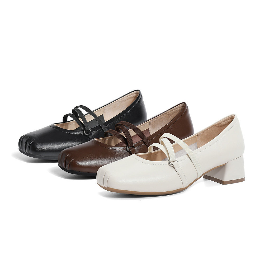 真皮~骄屿复古方头玛丽珍高跟鞋女2026新款通勤粗跟浅口粗跟单鞋