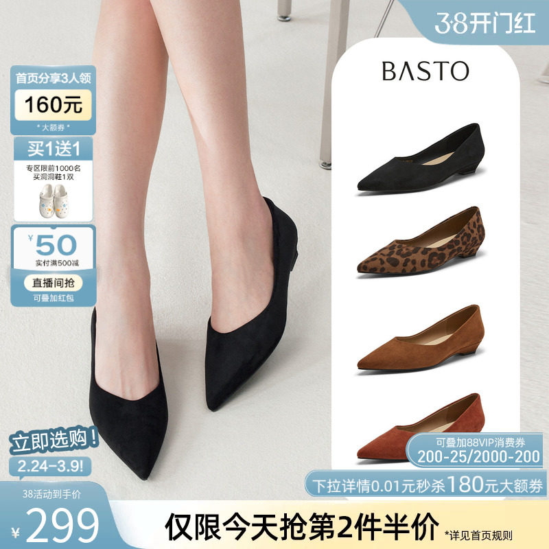 百思图2026春新款气质绒面跟鞋浅口单鞋复古粗跟尖头女鞋R6551AQ6