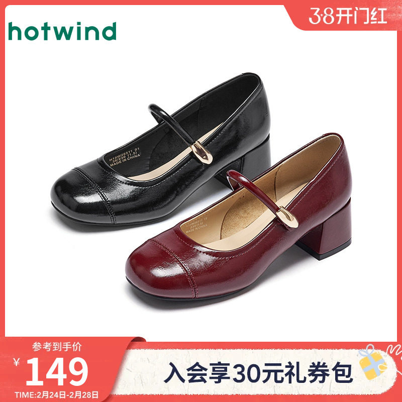 热风复古玛丽珍单鞋女2026年春季新款红色粗跟浅口女鞋百搭高跟鞋