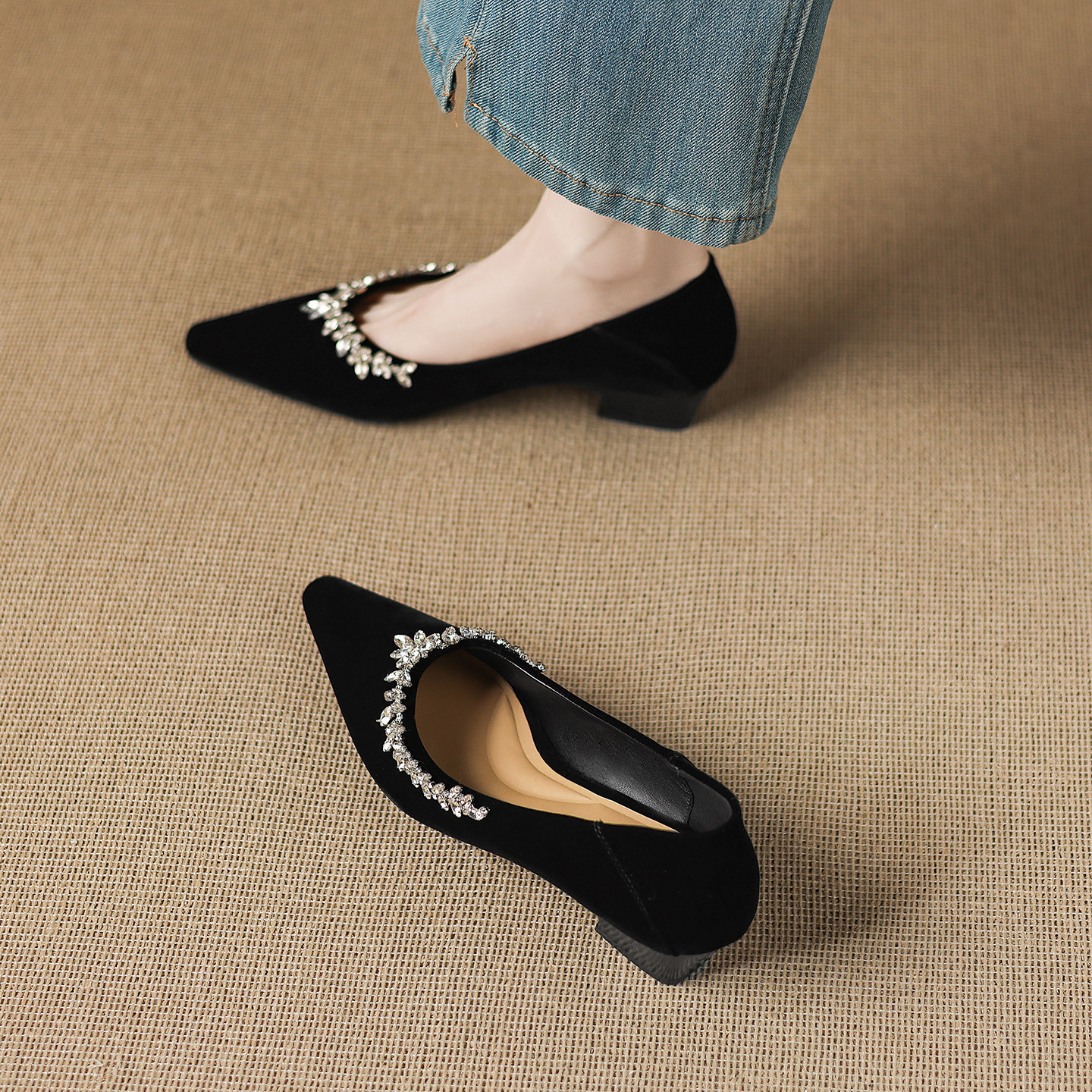 巨好看玛丽珍水钻2026新款春款复古粗跟尖头浅口绝美单鞋女不累脚