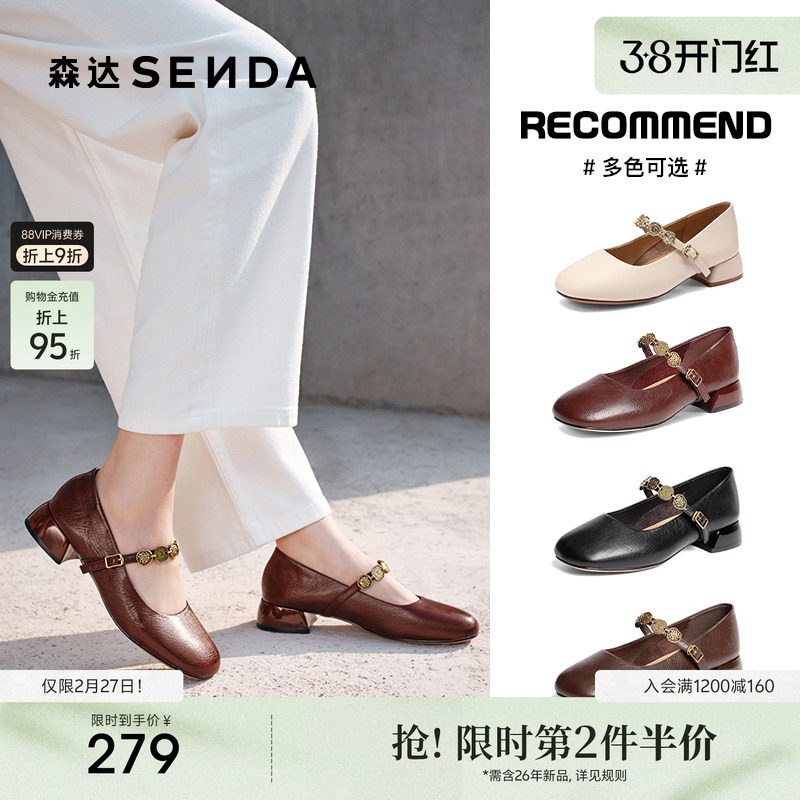 森达粗跟玛丽珍鞋女款2025新款复古小皮鞋浅口单鞋不累脚晚晚鞋