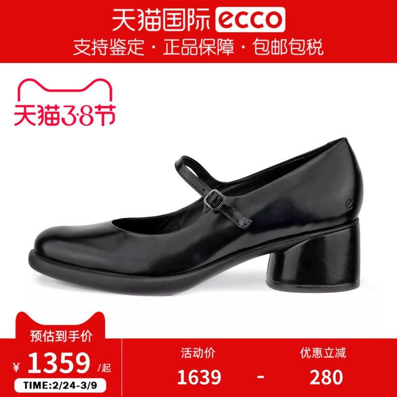 ECCO爱步女鞋新款通勤玛丽珍鞋复古粗跟浅口单鞋 雕塑奢华222503