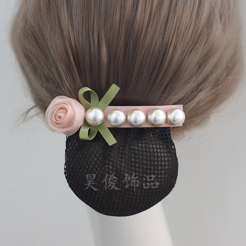 头花女职业盘发网兜酒店护士银行空姐服务员工作发夹发饰妞吖饰品