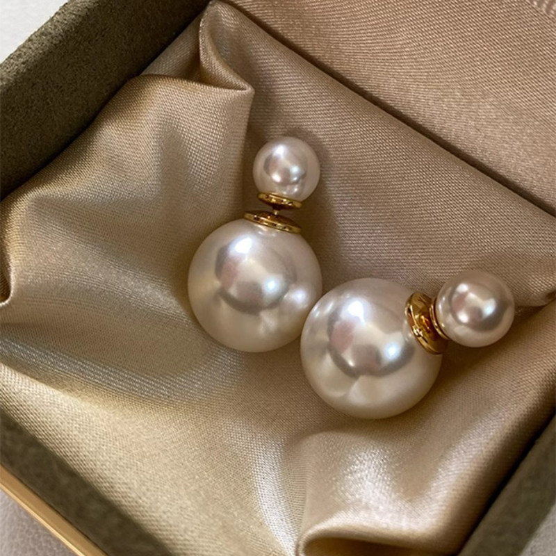前后球双面珍珠耳钉S925纯银耳坠大小球两用气质耳环女生气质韩国