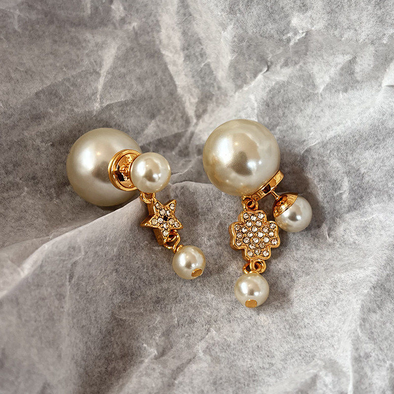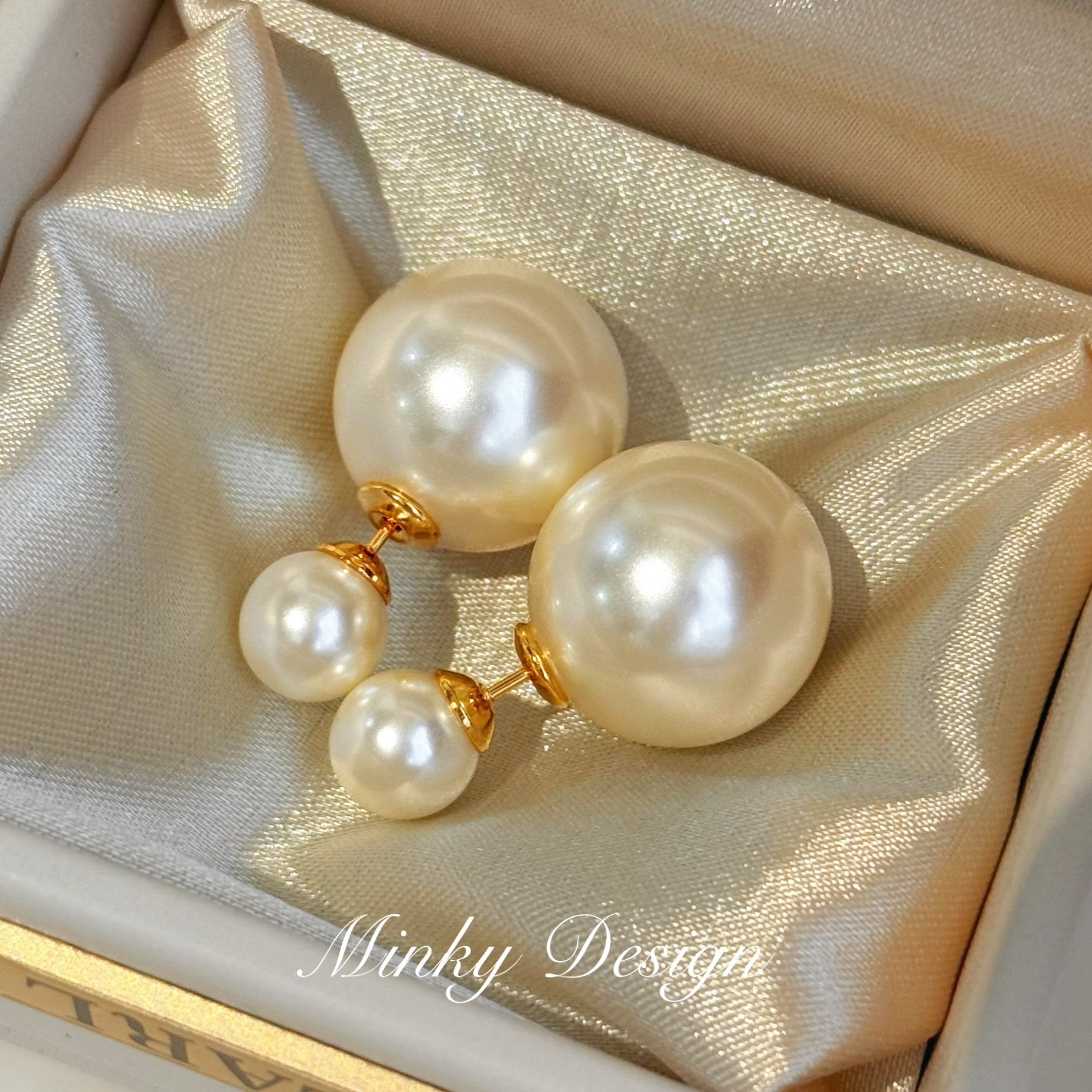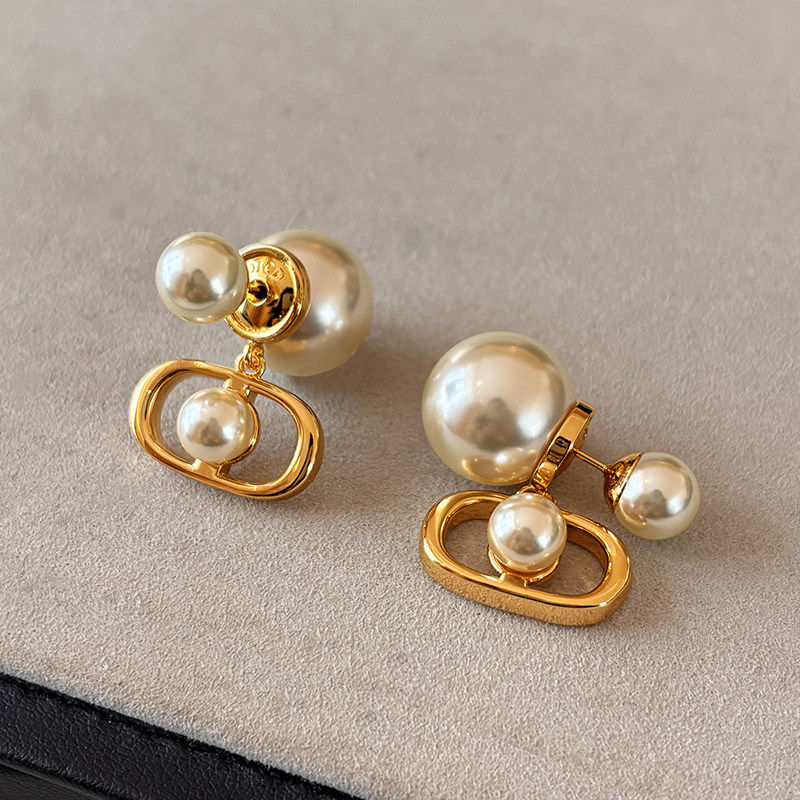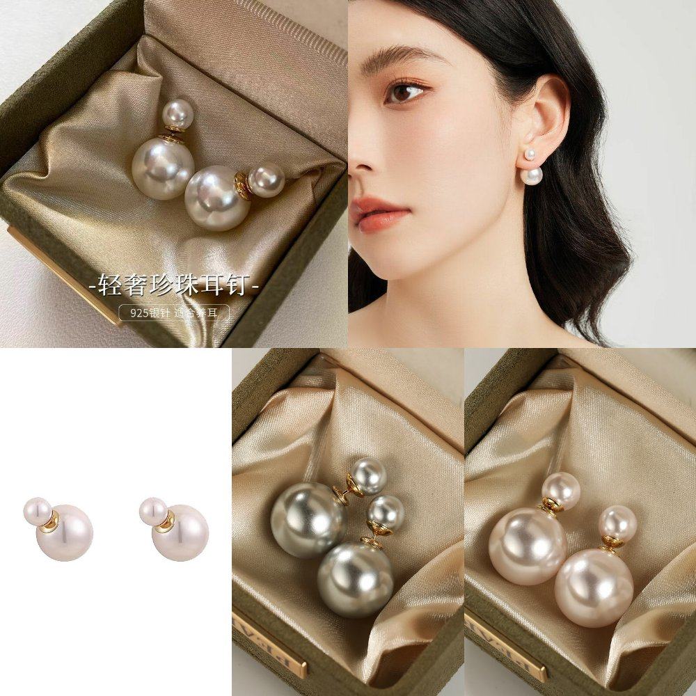 D家前后双面大珍珠耳环女cd耳钉新款爆款轻奢高级感耳夹气质耳饰