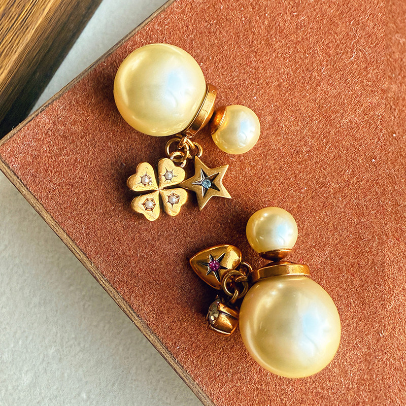 D家双面珍珠耳环女耳钉新款轻奢高级感耳坠独特复古夸张秋冬耳饰