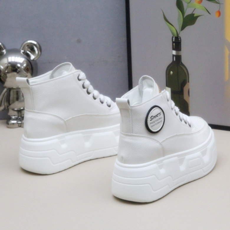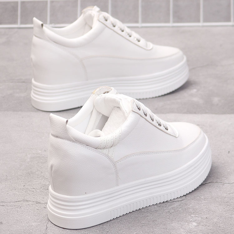 全头层牛皮专业内增高女鞋8CM厚底松糕小白鞋轻便小个子休闲板鞋