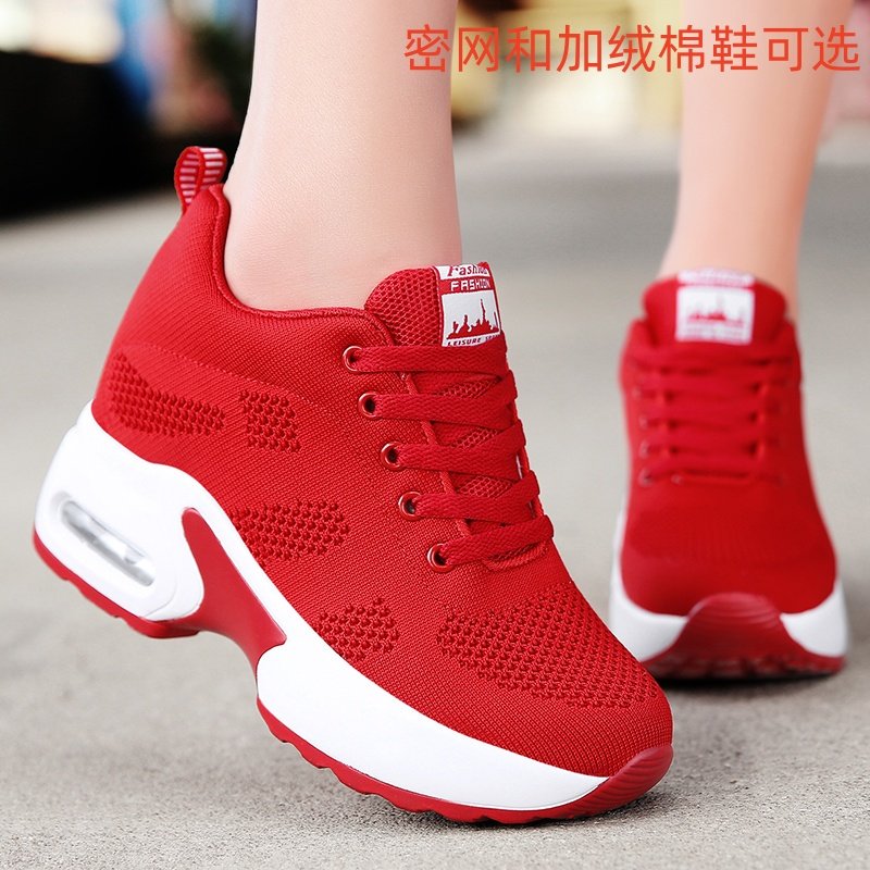 秋冬款隐形内增高女鞋8cm时尚厚底轻便小个子大码运动鞋红色加绒