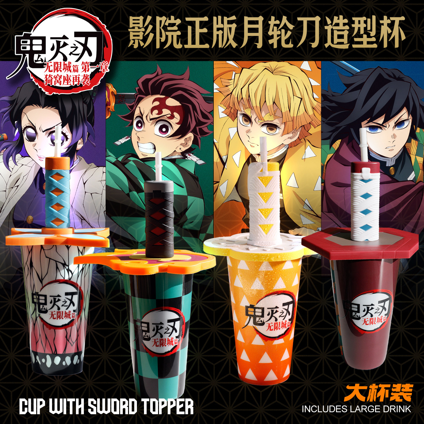 正品万达电影鬼灭之刃周边铁桶变冷杯旋转造型桶立牌挂件吧唧盲盒