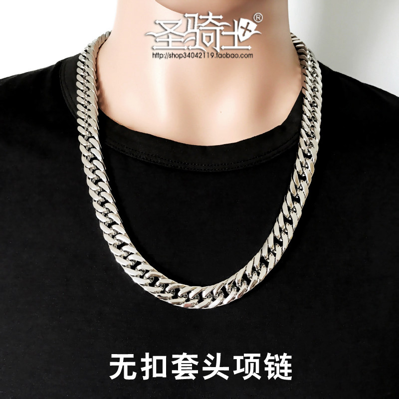 白金色套头链男士项链钛钢无扣国潮嘻哈长短hiphop链子霸气不褪色