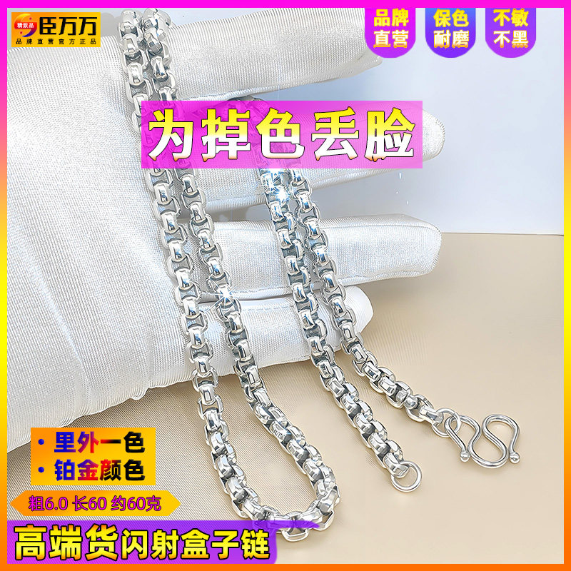 臣万万纯男士款闪亮面盒子卡链足可水洗钛铂白金色银色pt项链子95