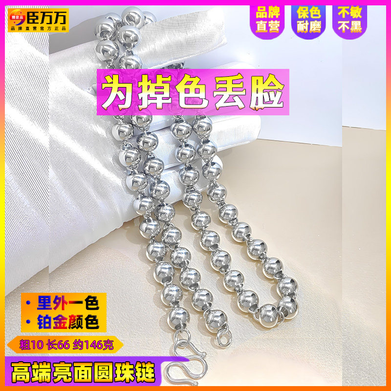 臣万万纯男士款光亮圆珠佛珠链足可水洗钛铂白金色银色pt项链子95