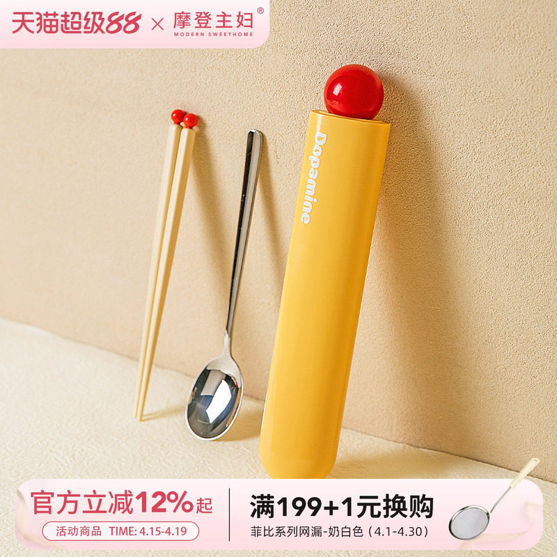 摩登主妇筷子勺子套装一人用便携餐具筷子外出携带304勺子收纳盒