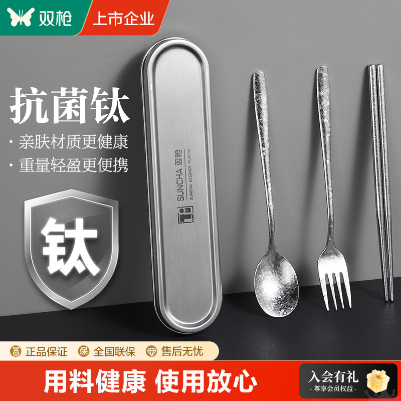 双枪纯钛筷子勺子套装便携餐具套装收纳盒一人用学生儿童外出携带
