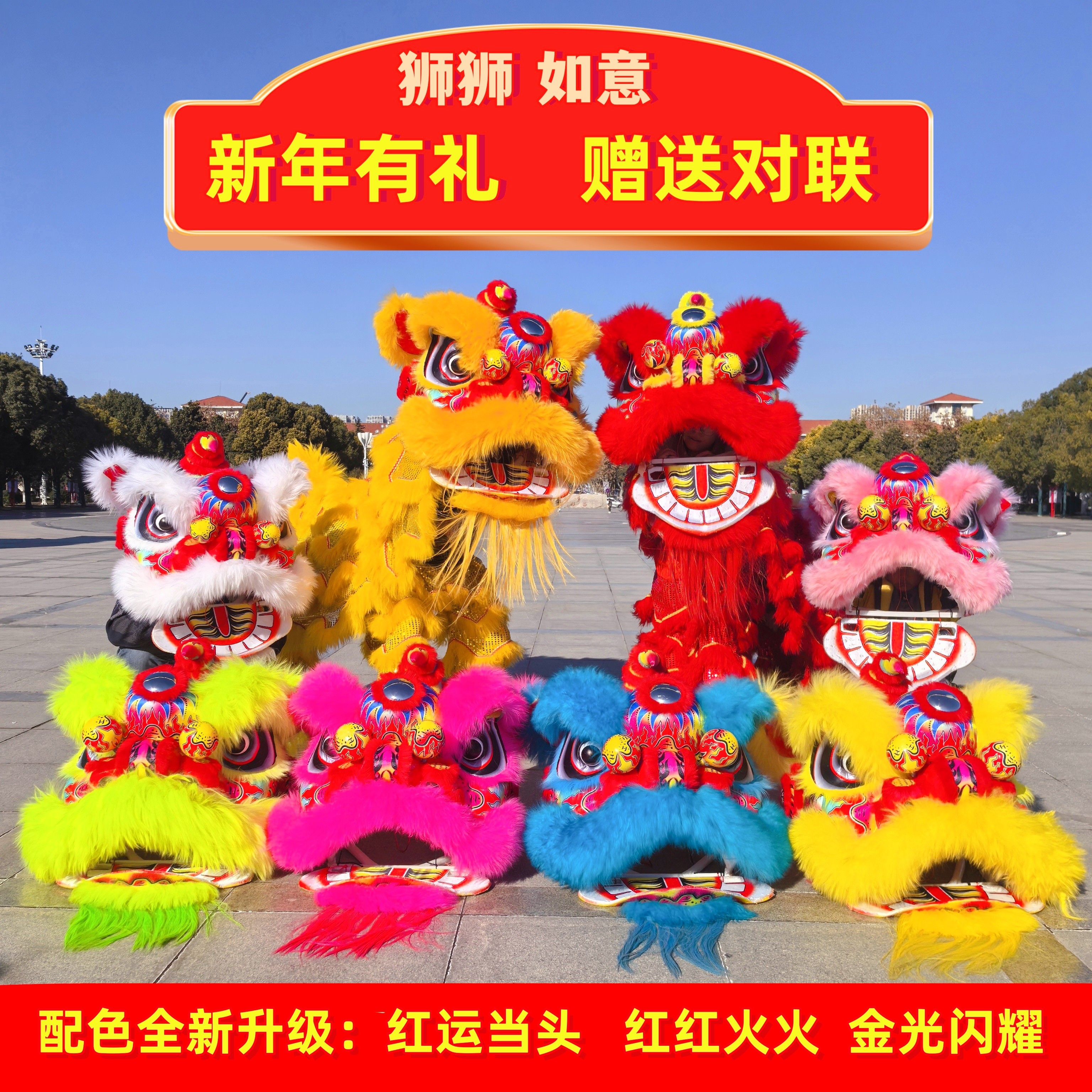 舞狮道具南狮双人狮羊毛狮广东狮澳洲羊毛舞狮表演狮单狮头演出狮