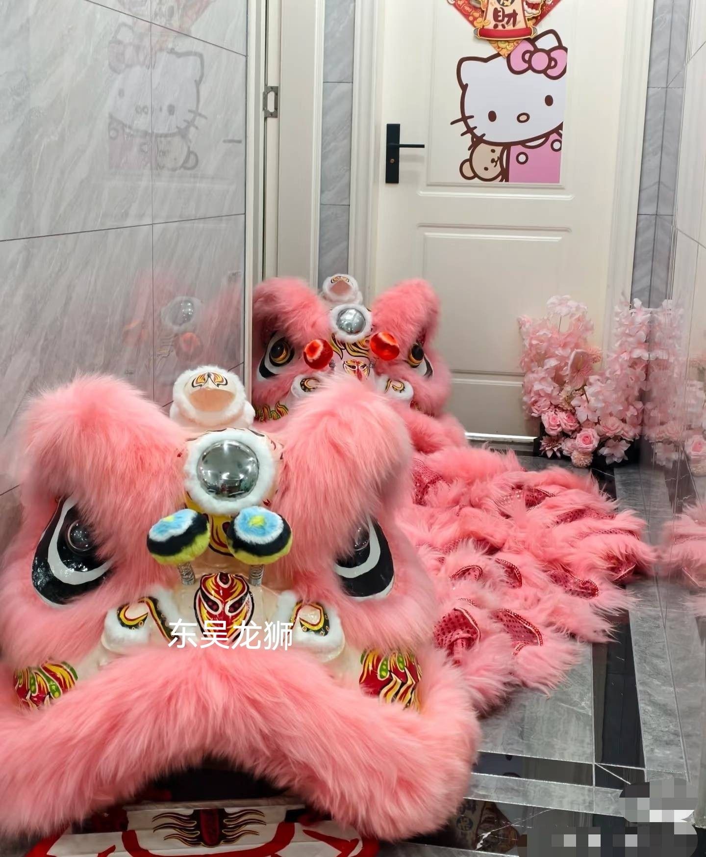 粉色狮头结婚拍照婚房装饰南狮醒狮舞狮道具舞龙舞狮整套澳洲羊毛