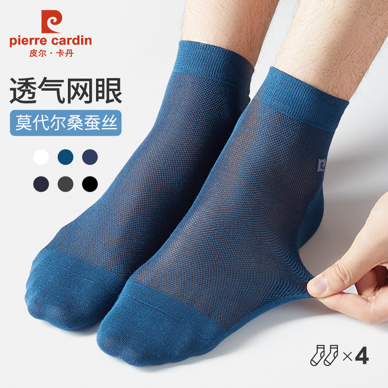 皮尔卡丹官方正品夏季薄款丝袜子男士莫代尔桑蚕丝长筒网眼簿白色
